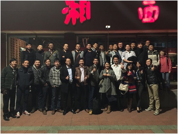 在第一天会议结束后,周凯跟我说北京的H5公司要请外地的兄弟公司吃饭,邀我参加,进来后发现原来是祥云做东。席间推杯换盏,亲切非常。Layabox的老谢的一句敬酒词让我印象深刻,久久不能忘怀。老谢说:“兄弟们!希望你们当中有一款产品能成为爆款,无论是谁的爆款,都是咱们行业所有人的爆款!” 实际上,中国H5的游戏圈,大部分人就在这里。这里有CP,有渠道,有发行,有引擎,有帅哥,有美女,还有不远万里来到中国的老外。最后祥云以酒盖脸,“H5,雄起!”快门把这一张张笑脸和中国H5游戏圈一起,定格在了北京一夜。