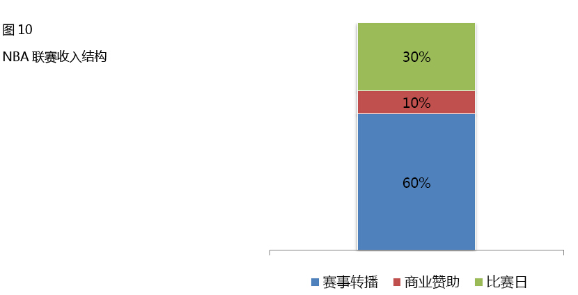 传统体育赛事 NBA,一项赛事的收入来源主要由三部分组成: