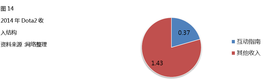 围绕《互动指南》打造的销售模式,除了为 Dota2 带来高额的奖金赛事之外,还为 Valve 带来了大量的收入,以 2014年1093 万美元的奖金收入计,Valve《互动指南》的销售收入为 3732 万美元,根据 Superdata 数据,2014年dota2 收入约 1.8 亿,《互动指南》收入占比约 20%。