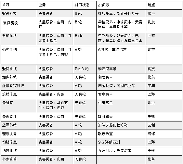 以下为部分融资成功的VR硬件项目名单: