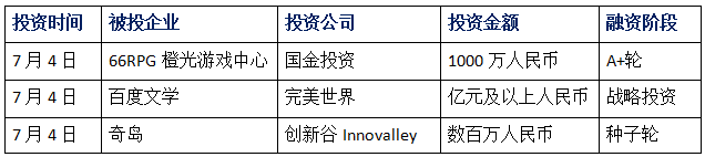 7月4日,完美世界正式宣布对百度文学注资并实现控股。并表示,百度与完美世界将以文学为连接点,在文学业务、版权业务、影游投资开发、影游产业链联动等方面展开深度合作,具体金额未公布。