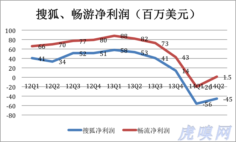 2014年第二季度,搜狐营收创纪录地达到4亿美元,却出现季度亏损。关键原因是畅游这块毯子快要遮掩不住了。