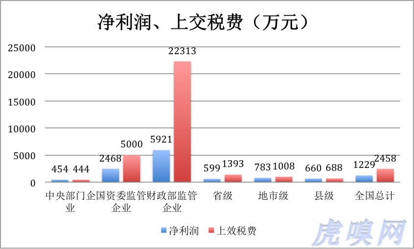财政部监管的每家企业上效税费2.23亿元,一以下子将全国国企平均数拉到2458万元。其实中央部门企业年均税费才444万元,省级企业不过1393万元。