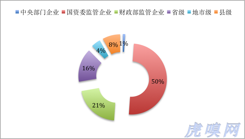 2013年,94个中央部门所属企业下辖独立核算法人企业9988户;113家国资委监管企业下辖独立核算法人企业3.8万户、5家财政部监管企业下辖独立核算法人企业3614户;各级地方政府管理独立核算的国有法人企业分别为:省管4.2万户、地市管1.6万户,县管4.5万户。全国具有独立法人资格的国企共15.5万户,总资产104万亿。