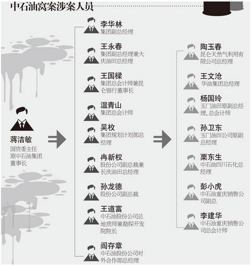 四天之后的9月1日,前中石油董事长、时任国资委主任的蒋洁敏也被宣布正在接受组织调查。