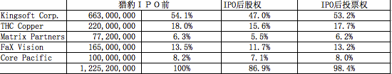 附:猎豹IPO前后股权、投票权对照表