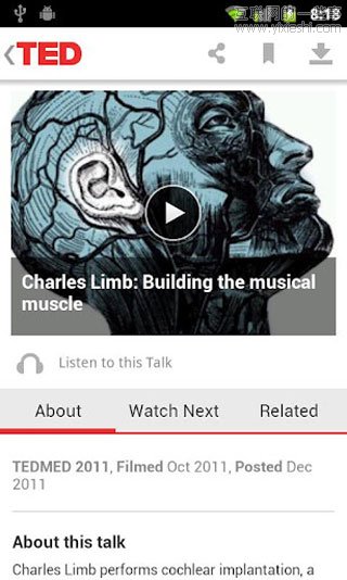 有些app不是为了制造事物,而是为了激发你的思维。TED讲座是可想象的最好的健脑食品(译者注:TED是Technology科技, Entertainment娱乐, Design设计的缩写,这个会议的宗旨是"用思想的力量来改变世界")。通过这个app你可以访问这些讲座,并可以下载到设备上慢慢看。"这简直让人上瘾"Gibbon说:"TED具有大量的精彩内容,我可以一连好几个小时沉醉在其中。这是一个非常棒的应用,通过它我可以浏览来自各种各样有趣的天才们的精彩演讲。"