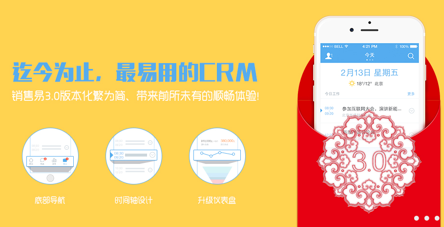 另据悉,销售易CRM将于3月底发布全新改版的3.0版本,新版本将一改企业级软件的复杂繁琐,采用大家熟悉的“微信式”交互设计,提升使用者的效率。