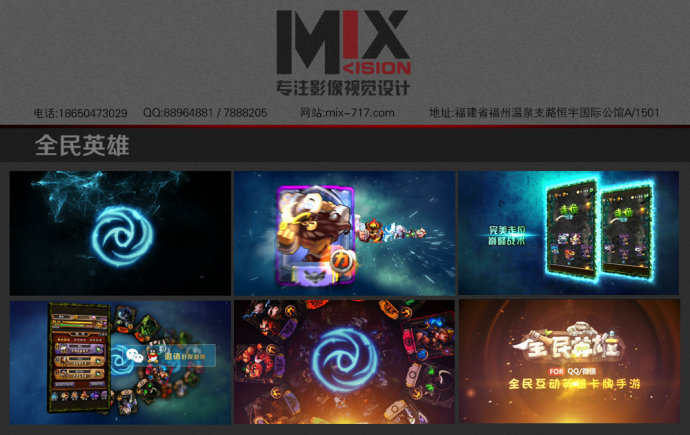 公司拥有丰富制作经验,默契十足的技术团队,完美精湛的制作水平,创新的设计能力,以及人性化服务。MIX视觉坚持“一切以市场需求、客户的要求为出发点”的宗旨,不断为互联网产品提供完美的影像宣传视频。